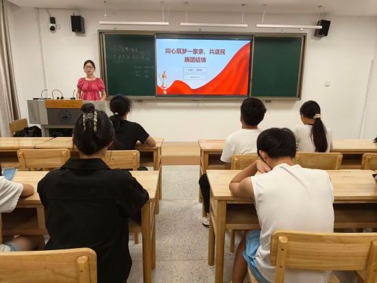 活动中,口腔A2411班于教学楼(一)B504召开主题学习活动。团支书舒艺在会上表示:“中华民族是56个民族共同组成的命运共同体。筑牢共同体意识,不仅是实现民族复兴的必然要求,也是我们每一名青年员工的责任。”她结合对口支援、乡村振兴、灾难共抗等生动实例,阐述了“民族团结一家亲”的深刻时代意义,鼓励同学们从尊重不同风俗、参与文化交流等日常行为做起,争做民族团结的积极践行者。