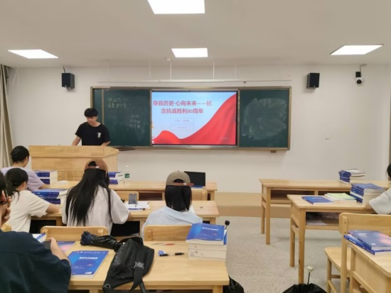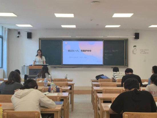 在教学楼(一)B303,基础A2411班团支书王铮楠通过历史纪录片和史料图片,系统地梳理了九一八事变的历史背景与发展脉络,生动呈现了民族苦难与抗争史诗。在随后的分享讨论中,同学们踊跃发言,结合杨靖宇、赵尚志等抗日英雄的事迹,深刻感受到革命先辈舍生取义的崇高精神。