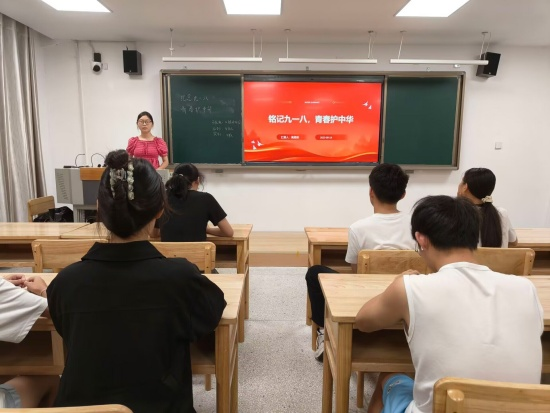 在教学楼(一)B504,口腔A2412班团支书高恩琪通过PPT讲解,从事件背景、英雄事迹、历史启示等方面深入介绍了九一八事变带来的民族苦难,帮助同学们彻底摒弃“历史遥远”的模糊认知,牢固树立“胜利来之不易”的思想观念。她希望同学们要从感动转化为行动,以专业学习和社会担当践行真正的家国情怀。