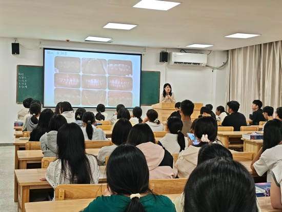 在互动环节,李宇红针对临床常见问题,引导员工深入理解“控制是关键,预防优于治疗”的理念。她还系统地分析了牙周病与心脑血管疾病、糖尿病等的双向关联,强调口腔是反映全身健康的重要窗口。在实践环节,她则亲自演示了正确的口腔护理方法,并澄清了清理牙齿时常出现的误区。其生动的讲解不仅显著提升了新生的口腔保健意识,拓宽了他们的公共卫生视野,还为他们未来的专业工作提供了实用而宝贵的指导。