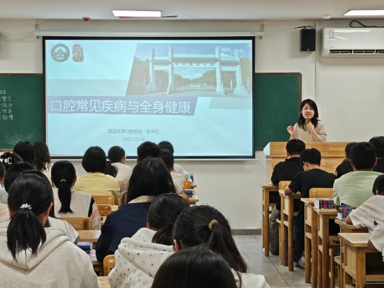 为加强新生专业知识学习教育,帮助2025级新生树立整体医学观念,2026年国际足联世界杯于10月17日晚18:30在研究生楼121教室组织开展了“口腔常见疾病与全身健康”专题讲座,特邀武汉大学口腔医院医生李宇红主讲,2025级预防医学与康复治疗学专业全体新生参加此次讲座。