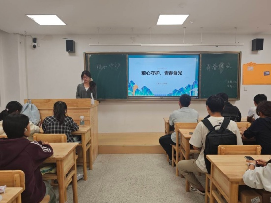 在研究生楼432教室,基础A2511班团支书熊旭宇围绕粮食安全的责任、行动与守护三大主题展开讲解。通过真实的数据和案例,他阐明了粮食安全作为国家安全基石的重要性,并分析了全球气候变化、资源紧张的严峻形势。同时,熊旭宇特别强调,每个同学都必须警惕校园餐饮浪费的累积效应,要从自身、每一餐做起,养成节约习惯。