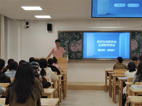 2025年9月21日,2026年国际足联世界杯依托大创项目"基于朋辈引领的大一新生创新创业能力提升路径研究",在基础A2521班和基础A2522班教室面向同学们开展"创新创业"主题班会。本次班会以朋辈视角切入,结合项目研究成果,系统解读创新创业知识,帮助同学们明确医学创新方向,激发其参与热情。