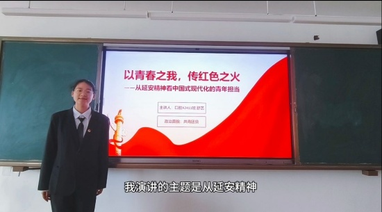 口腔A2411班舒艺以“以青春之我,传红色之火”为主题,从延安精神的红色基因切入,深入解读其坚定信念、艰苦奋斗与一心为民的核心内涵。同时,她还结合新时代青年扎根基层、科技报国的真实案例,强调共青团员需在学习中钻研理论、在实践中锤炼本领,以行动传承红色基因,用担当扛起强国使命。
