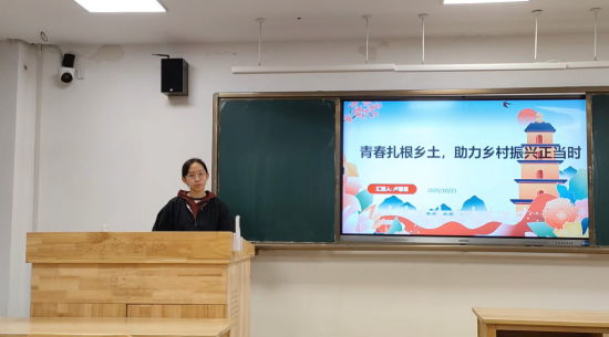 口腔A2412班卢慧霞围绕“青春扎根乡土,助力乡村振兴”展开讲述,她在阐释数字乡村概念与意义的基础上,引入直播助农、无人机植保等经典案例,生动地展现了青年如何以技术赋能农业。通过分享青年团队深入乡村开展帮扶与电商助农的实践经历,卢慧霞进一步指出,当代青年应结合自身专业、扎根广袤乡土,为实现乡村振兴与共同富裕贡献坚实的青春力量。