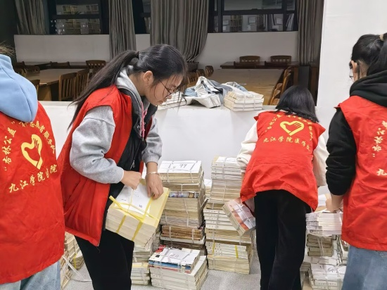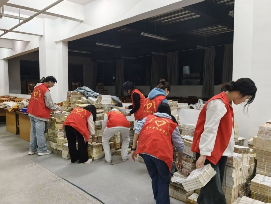 活动中,志愿者们不仅是环境的维护者,更是文明的传递者。在整理新书上架的过程中,大家分工明确,传递、分类、上架,配合默契 。尽管搬运书籍需要消耗不少体力,且冬夜气温较低,但大家毫无怨言,额头微微沁出的汗水与窗外的寒夜形成了鲜明对比。这种默默奉献的身影,成为了图书馆内一道独特的风景线,也无声地感染着周围的每一位读者,让“爱书、护书”的理念深入人心 。