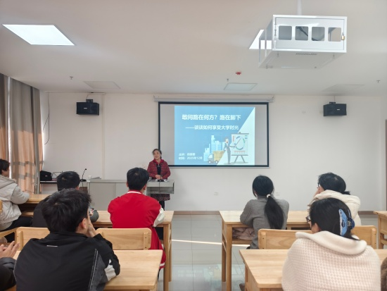 讲座中,郑美蓉以“如何享受大学时光”为主题,为员工带来了一堂生动的成长引导课。她从对同学们的祝贺与希望谈起,详细分享了自身老员工活中的专业学习点滴,并结合当前时代背景,勉励同学们珍惜和平稳定的学习环境,树立对生命、生活和学习的真挚热爱。