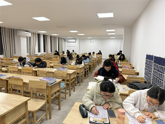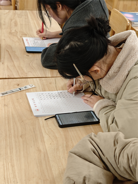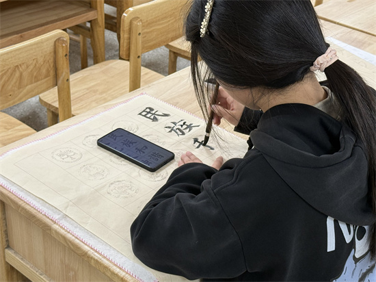 活动现场墨香萦绕,暖意融融。来自不同年级的同学齐聚一堂,或铺纸研墨,或凝神构思,或挥毫泼墨,神情专注而投入。楷书端庄秀丽、隶书古朴典雅、行书飘逸流畅、草书奔放洒脱,一笔一画间,尽显汉字独特魅力与书法艺术博大精深。既有深耕书法的同学现场献艺,落笔生花,一气呵成,展现深厚笔墨功底;亦有初学入门者握笔临摹,认真书写经典碑帖,于提按顿挫中感受汉字韵律与美感,传递对书法艺术的热爱与敬畏。