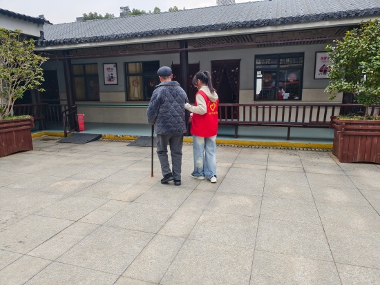每周六上午8点50分,志愿者们准时在公寓大厅集结,负责人明确行动准则:行动轻缓、语言温和,同时要重点关注高龄老人的身体状态。9点整,志愿者分组邀请老人参与户外关节操,7名成员在前放慢节奏领操,从颈部环绕到屈膝抬腿逐一示范。其余成员则在旁耐心帮扶肢体不便的老人,确保每位老人都能安全参与,现场氛围温馨而融洽。