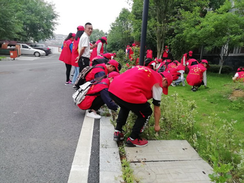 参观完儿童福利院的设施后,在工作人员的带领下,同学们分组在后院进行除草活动。天气闷热,汗水湿透了同学们的衣裳但同学们的热情却丝毫不减。活动虽然辛苦,但同学们想到孩子们可以生活在干净整洁的环境中,都感到十分的开心。