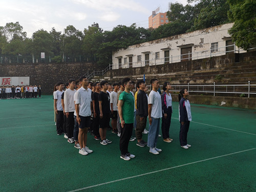 迎着清晨的第一缕阳光,伴随着雄壮的国歌声,同学们整齐的站在国旗下,庄严注视着五星国旗举行升旗仪式。