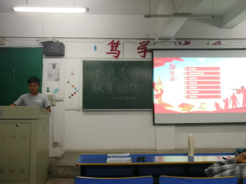 A1801班于思贤楼608举行“不负青春,献身国防”主题班会,本次班会由A1801班班长刘璐璐主持。在班会中,刘璐璐首先向同学们阐述了入伍的基本条件,以及报名参军的基本流程,随后向同学们说明了入伍还可保留学籍,学费补偿等优惠政策,强调了退伍之后的安置,让同学们充分的了解入伍的相关政策。