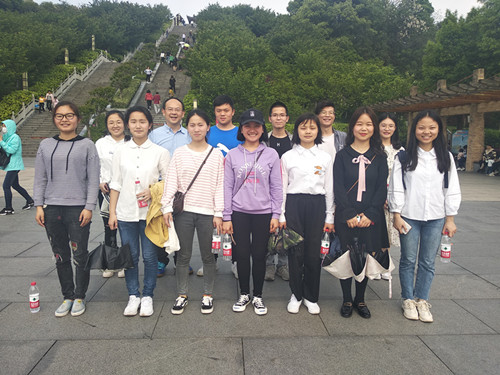 4月20日,车向新老师和员工模拟党支部第五支部全体成员前往南山公园烈士陵园,到达南山公园烈士陵园烈士纪念碑后,支部成员代表吴城秀同学简单介绍南山公园,随后,大家全体保持肃静,有序的前往烈士纪念碑。
