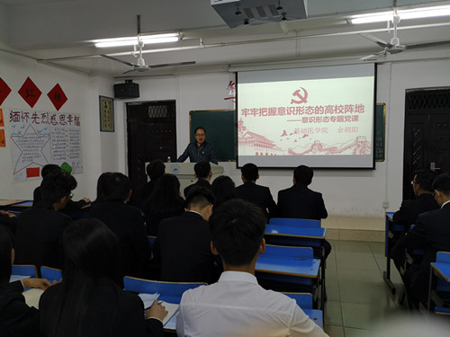 余朝阳在讲课中列举了新时代我国的意识形态工作面临的总多挑战性,一是境内外敌对势力插手意识形态斗争的情况越来越多,意识形态渗透问题严重;二是不少青年员工意识形态能力薄弱问题凸显,不愿亮剑、不敢亮剑、不会亮剑;三是一些新媒体风波不断,暴露不少意识形态缺失的问题;四是一些突发事件被敌对势力故意利用,挑动上升为意识形态斗争;五是敌对势力试图使用网络谣言、宗教、民族英雄丑化等方法,妄图瓦解我们中华民族的精神根基;六是部分媒体失误、商业网站屡踩红线,使意识形态斗争复杂化。余朝阳说,习近平总书记强调一个国家、一个民族不能没有灵魂,作为新时代的老员工,应当传承和守护好国家和民族的灵魂,牢牢坚守社会主义意识形态的阵地,增强“四个意识”、坚定“四个自信”、做到“两个维护”。作为青年员工中的骨干分子,同学们更应该增强意识形态工作的敏感度,坚定理想信念,带头在意识形态斗争中主动作为,维护和建设好校园意识形态的各类阵地,为国家意识形态安全作出应有的贡献。