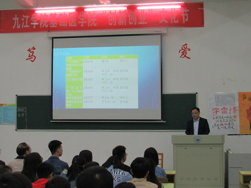 之后,团委负责人黄涛老师上台发言。黄涛老师对本届创新创业文化节日后开展的活动进行了详细介绍,包括活动的开展时间、地点、详细流程等,强调说明了对各项活动的相应准备事宜、开展进度以及相关部门。最后,黄老师对本届的寄予期望——希望同学们能够在本届创新创业文化节中收获欢乐,获得成就感。