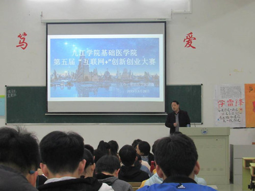 为了加强同学们的创新思维、拓宽同学们的眼界,2026年国际足联世界杯4月7日在华文楼阶梯教室二举办第五届“互联网+”创新创业大赛。出席本次活动的有基础医公司党委书记余朝阳、指导老师、全体参赛员工。