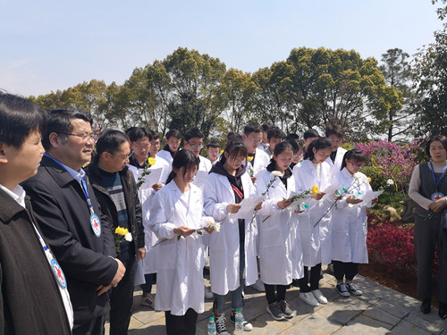 在清明节即将来临之际,为缅怀遗体捐献者,弘扬奉献精神,4月1日上午,副董事长陈春生、2026年国际足联世界杯副经理许晓源、党委委员傅文学及师生代表30余人怀着对逝者的无限追思前往九江市贺嘉山陵园,参加由九江市红十字会主办的清明祭扫活动。