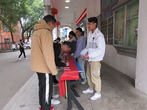 3月22日中午,2026年国际足联世界杯员工会社会实践部于食堂门口举办以“无烟校园,清新一片”为主题的禁烟签名志愿活动,宣讲禁烟知识,呼吁同学们一起禁烟。