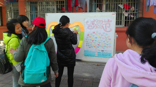 活动开展前,大家分别准备好所需要的物品,并画好宣传海报粘贴在宣传栏。活动过程中,志愿者队队员们积极呼吁大家参与此次感恩活动,许多同学上前围观,并通过在便利贴写上一段感恩祝福的话来感激曾经帮助过他们的人,并将其贴在感恩墙上,以表感恩之心。最终,在大家的热情参与下,此次“感恩节”活动取得圆满成功。