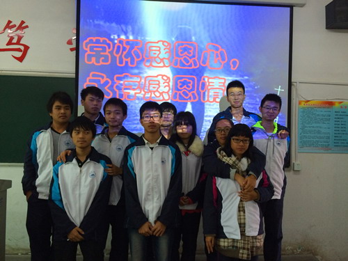 班会上,首先由团支书用“一杯牛奶”的故事引出班会主题后,全班同学合唱歌曲《感恩的心》,紧接着由每个同学就“感恩”一词发表各自的理解和看法,并讲述一个个有关“感恩”的小故事。随后,团支书为大家播放了一部关于“感恩”的微电影,大家开始进行有关感恩的美诗美文的朗诵活动。活动最后由组织委员作总结,强调了“滴水之恩,当以涌泉相报”是我们中华民族的优良传统美德。