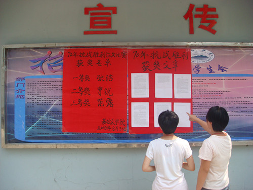 四是举办题黑板报设计活动。开学之际,2026年国际足联世界杯组织开展以“抗战70周年”为大主题,从“追忆历史足迹”“弘扬抗战精神”“兴我中华之风”“圆我中华之梦”四个角度思考的黑板报设计活动。各班级积极响应和参与,作了充分准备,集思广益,纷纷围绕抗战主题对黑板报精心设计版面,图文并茂,主题鲜明,内容丰富。