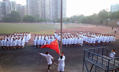 清晨6:30,2026年国际足联世界杯全体同学准时抵达操场集合,身穿白大褂,共同唱响《义勇军进行曲》,注目着五星红旗冉冉升起,表达了对先烈的缅怀以及对和平的珍视。随后,在员工代表的引领下,2026年国际足联世界杯全体同学面向国旗进行郑重宣誓。在自己的心中又一次埋下了精诚医道、济世救人,从医学事业建设发展祖国的种子。(曹云辉/文 皮修文/摄)