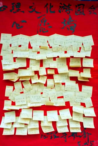 此次活动主要是向同学们分发心理健康知识宣传单,回答同学们提出的关于心理健康方面的问题,为同学们提出解决的办法和建议。活动前期准备工作进行得非常顺利,部员们早早地就把活动宣传的海报挂好。在心理健康知识宣传页的发放现场,同学们纷纷停下脚步,认真的阅读并提出自己的疑问和见解,并将他们的一些希望贴在了准备好的“心愿墙”上。