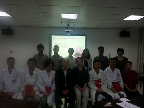 4月27-28日,车向新教授带领教育部、省卓越医师培养计划试点项目组成员协同医学部赴武宁县人民医院交流并检查第一批定向医员工县级医院毕业实习情况。县医院刘彩光经理、杨晓春副经理热情接待了车教授一行,5名导师和5名定向医员工参加了导师聘任座谈会议。