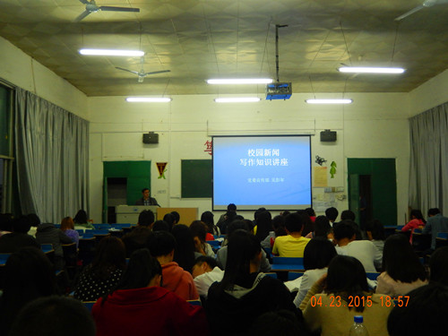 讲座中,吴老师从“校园新闻和校园新闻的特点”、“校园通讯员怎样写新闻”、“校园通讯员写作要注意的问题”三个方面进行了讲述。他以“怎样写新闻?”为话题切入,从导语、标题写作注意问题三个方面展开,指出制作标题时需要做到“立意高、角度刁、语言生动”,并结合一些优秀的新闻为例,进行详细点评与分析,加深了同学们对新闻的感性认识。随后强调校园记者要学会捕捉校园亮点,凸显新闻的价值。在成为分享者的同时还要兼顾解释者的角色。同时针对写作方法论中新闻消息的“倒金字塔”手法进行形象的介绍,让员工们对校园新闻消息的撰写有了实质性的了解。