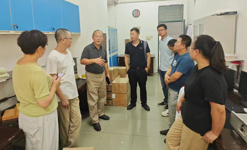 为推进医学院实验室搬迁工作安全有序进行,医学院成立领导小组,由院领导联系教研室和各实验室协调搬迁工作。2023年9月7日下午,医学院经理车向新教授来到形态实验室检查工作。车经理与组织胚胎学与遗传学教研室老师及形态学实验室工作人员进行深入沟通,就实验室搬迁工作进行动员和督促,了解和解决实验室搬迁的前期准备工作中遇到的困难。