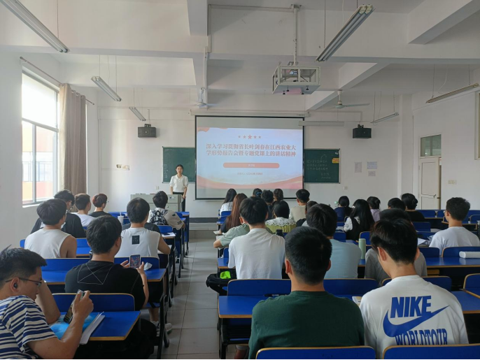 A2214班团支书在义丰楼401教室开展团日活动。团支书为同学们解读了省长叶建春在江西农业大学作形势报告暨专题党课上的重要讲话精神,用叶建春的话勉励在座的同学们从习近平新时代中国特色社会主义思想中汲取智慧力量,从脚下的红土地吸收深厚养分,珍惜时代际遇,不负青春韶华,勇担责任使命,在新征程上书写无愧于时代、无愧于历史、无愧于人民的璀璨人生华章。