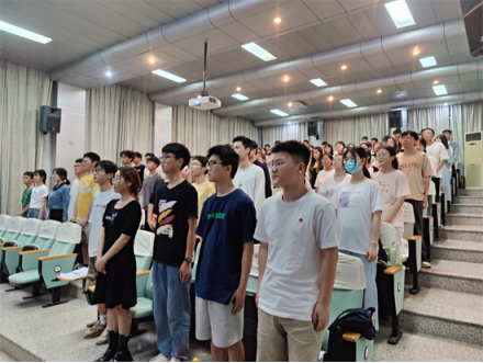 仪式伊始,全体人员起立奏唱国歌与《没有共产党就没有新中国》红歌,嘹亮而宏伟的歌声萦绕在报告厅上空。许晓源首先进行动员讲话,他指出大家作为一名入党积极分子,要把握学习内容,严明学习纪律,明确党员发展的重要内容,确保党员发展质量;并强调了学习贯彻习近平新时代中国特色社会主义思想的重要意义,要学有所思、学有所得、学有所成;同时他也预祝本次培训班取得圆满成功。