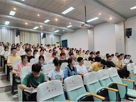 开班仪式结束后,许晓源与刘频健分别为学员们进行了专题党课辅导。许晓源在《奋进新时代 建功新九医——学习贯彻党的二十大精神》内容讲授中,为同学们从新时代十年的伟大变革和历史成就、开辟马克思主义中国化时代化新境界、新时代新征程中国共产党的使命任务、新时代新征程的重要部署和战略举措等四个方面展详细解读了党的二十大精神,并号召同学们做有理想、敢担当、能吃苦、肯奋斗的新时代好青年,同时要求大家努力提升自己整体素质,为建功新九医,融入学校建设应用型大学的建设目标做贡献。刘频健则围绕“弘扬五四精神,做新时代有为青年”这一主题展开详细讲述,从五四精神的起源到五四精神的具体内涵再到五四精神新时代内涵的具体联系,他鼓励同学们要树立和培育社会主义核心价值观,并将个人命运与国家命运相联系,在拼搏中书写人生华章。