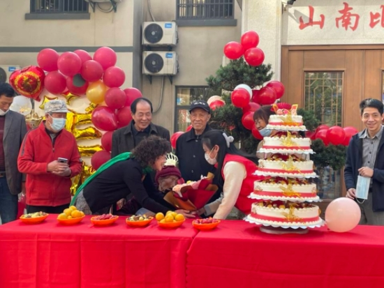 此次活动恰逢一位老奶奶102岁诞辰。志愿者们早早地来到公寓,协助工作人员布置生日会场。欢乐的生日歌萦绕在公寓上空,志愿者们一边维持现场秩序,一边悉心照顾老人,共同为老奶奶送去了生日祝福,并与奶奶合照留念。