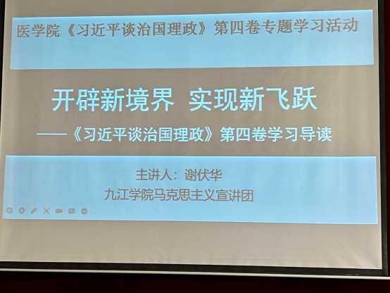 根据公司党委的要求,9月28日下午,医学院在立本楼三楼报告厅开展《习近平谈治国理政》第四卷政治理论专题学习活动,党政班子成员、全体教职工及员工党员参加了此次活动。活动由副书记刘频健主持。