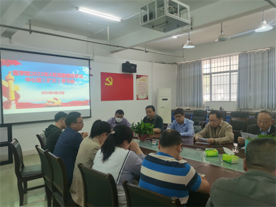 4月28日下午,医公司党委在华文楼105会议室召开了4月份党委理论学习中心组(扩大)学习会,党委委员、支部书记、科室负责人、教研室主任、专职组织员参加了会议。会议由医公司党委书记许晓源主持。