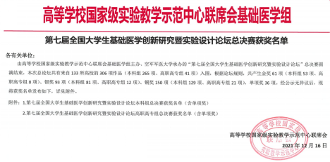 12月5日,医学院师生在由高等学校国家级实验教学示范中心联席会基础医学组举办的“第七届全国老员工基础医学创新研究暨实验设计论坛总决赛”取得了1金2铜的优异成绩。本次总论坛共有133所高校的306项作品(本科组265项)入围,公司有三项作品进入总决赛,并成功实现了金奖零的突破,这也是近年来公司师生参加该项比赛取得的最好成绩。获得金奖的是由钟冬火、赵勇老师指导,周傲雄同学为队长,李凯、巫立乾、徐帅等组成的“四颗杏树苗”团队。李兴暖老师指导、唐远妍同学为队长的“never say never”团队和李辉敏老师指导、程子安同学为队长的“杏林小队”分别获得铜奖。