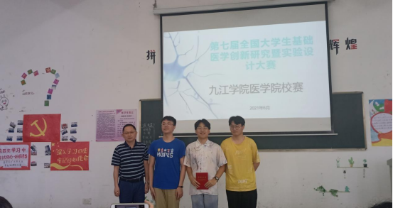 比赛最后,评委组长熊建军老师为本次活动做了总结。他指出,本次创新研究及实验设计大赛顺应国家对创新型人才的迫切需求,是一次很好的锻炼机会,同学们应当把握住机会,顺流而上,以梦为马,不负韶光。经过激烈的角逐,“白衣怀丹心的研究小组”团队荣获一等奖,“四颗杏树猫”团队和“杏林小队”团队分别荣获二等奖,“never say never”团队、“糖达人”团队、抗糖战队”团队和“搞科研的小网红”团队分别荣获三等奖。
