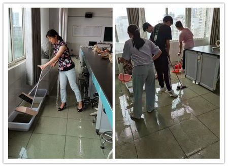 在此次应对雷暴雨突袭的防范工作中,实验中心各位老师以实际行动践行了“学党史、悟思想、办实事、开新局”,充分体现了认真细致、爱岗敬业的担当精神。