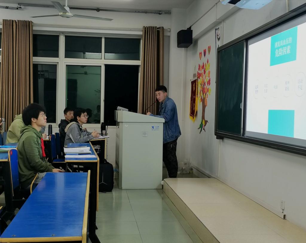 活动分为线下宣传、线上竞赛两个阶段。活动伊始,主讲人胡盛钊以PPT的形式进行“世界高血压日之高血压的检测与预防”知识宣讲。宣讲会上,主讲人向同学们介绍了高血压疾病相关知识和高血压知识竞赛相关事宜,同学们表现出浓厚的兴趣,相继提问并踊跃报名参赛。4月13日晚7时于思贤楼606,参赛人员通过手机在线上完成竞赛答题,软件自动评分选出获奖同学。最后,A2032班肖玲获得一等奖,A2031班周昌获得二等奖,社长郑朝阳向获奖同学颁发荣誉证书和奖品。