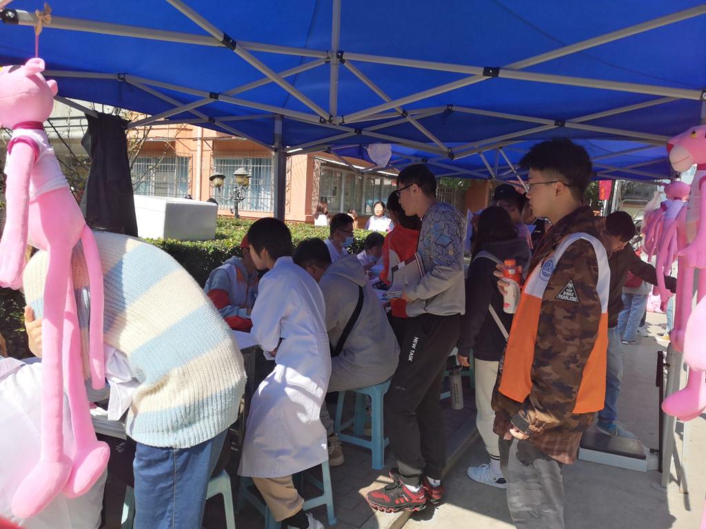早上9点,伴随着温暖的阳光,活动正式开始。志愿者们在献血站工作人员的帮助讲解下可以正确的回答同学们关于献血前事项的专业知识并指导同学们正确填写了相关表格。在填写完表格后,经过测血压,验血型等一系列流程后,在我们志愿者的带领下有序地进入献血车开始献血。