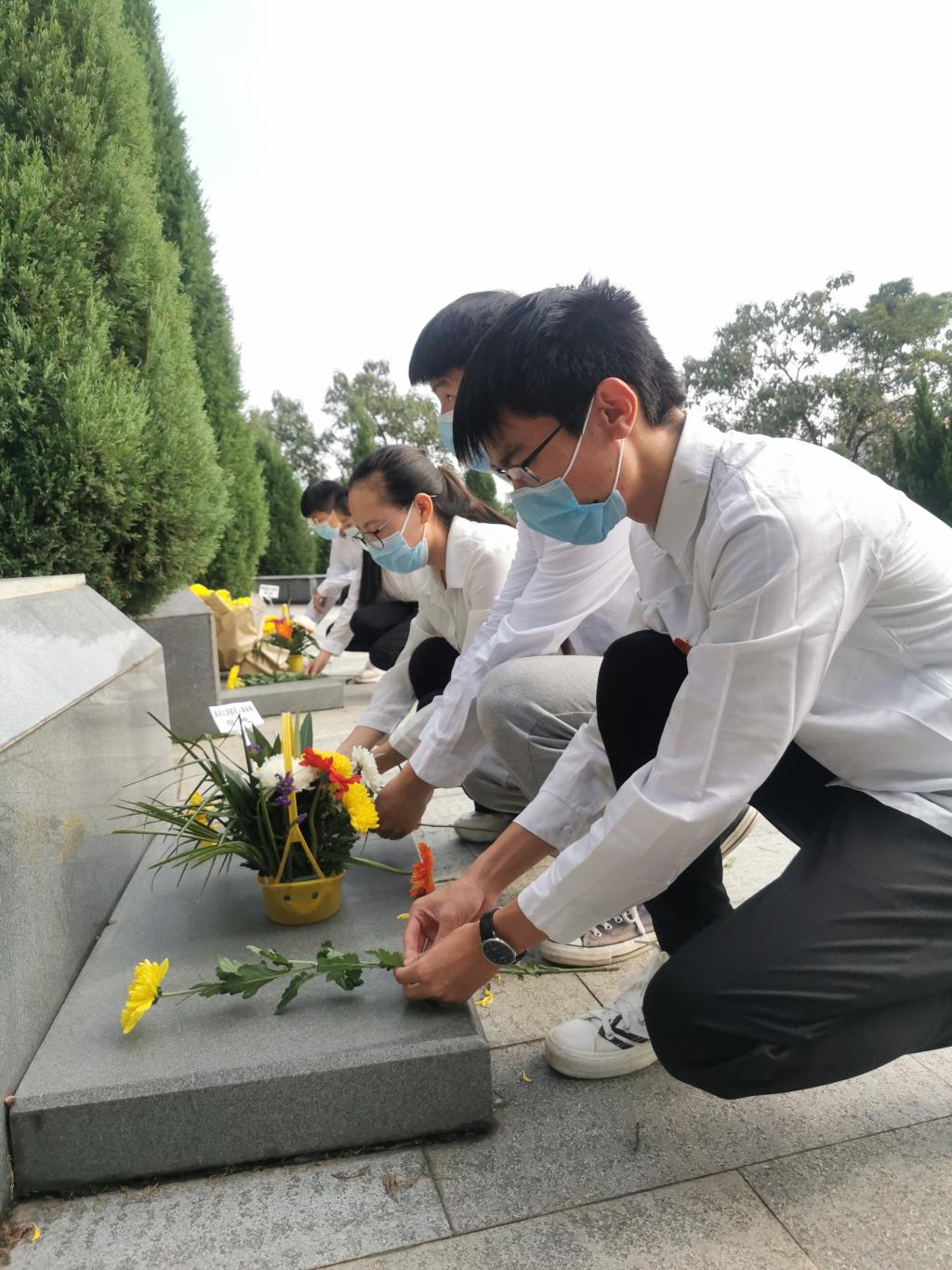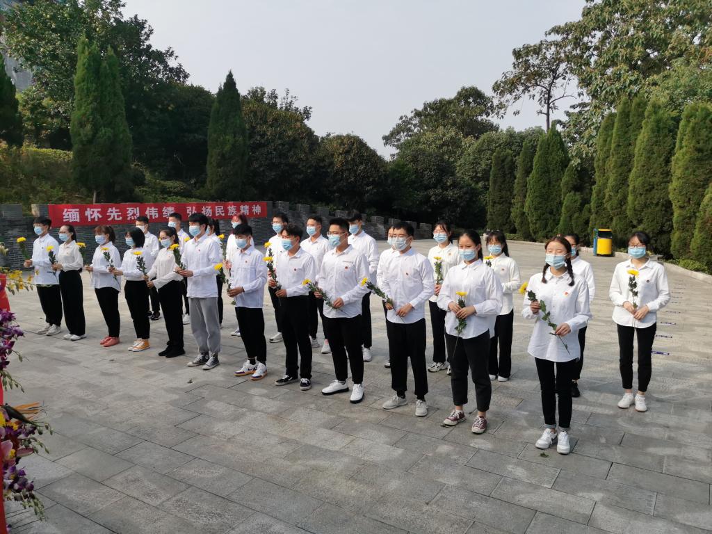 在国庆中秋双节这样一个盛大的节日里,除了欢呼和祝福,更多的应该是铭记。上午8:30,所有成员在南山公园门口汇集一起登上山顶,随着一步一步地靠近陵园,大家也逐渐严肃起来。抵达纪念碑前,全体人员向烈士默哀、三鞠躬,瞻仰烈士纪念碑并敬献鲜花。雄碑是刀和枪写出来的壮丽诗篇,是血与火煅出来的恢弘画卷。大家参观了陵园并仔细阅读了纪念碑上的内容,仰望着碑石上革命先烈们的画像、回味着先辈们那些艰苦卓绝的斗争经历,成员们都不禁感慨到先烈们当时的艰辛,并道出:如今的岁月静好,只是有像这些先辈们一样负重前行。