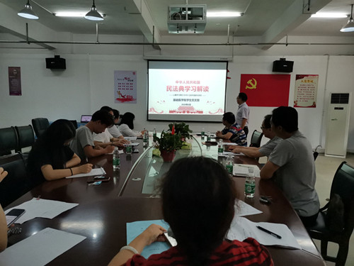 活动开始,余朝阳作了题为《聚焦两会,关注民生》的专题党课辅导报告。他从两会的风采亮点、精神要义、民生热点等三个方面对两会精神作了详细解读,并结合员工思想政治工作及当前疫情防控要求谈了自己的想法和建议。辅导报告线条清晰、资料翔实、深入浅出,为参会的师生全面、准确地理解和把握全国两会精神提供了很好的指导,也为下一步员工党支部更好地开展员工思想引领提供了很好的思路。会上,黄涛同志讲了一堂《中华人民共和国民法典学习解读》的微党课;与会的师生就两会精神和《民法典》学习进行了交流发言。