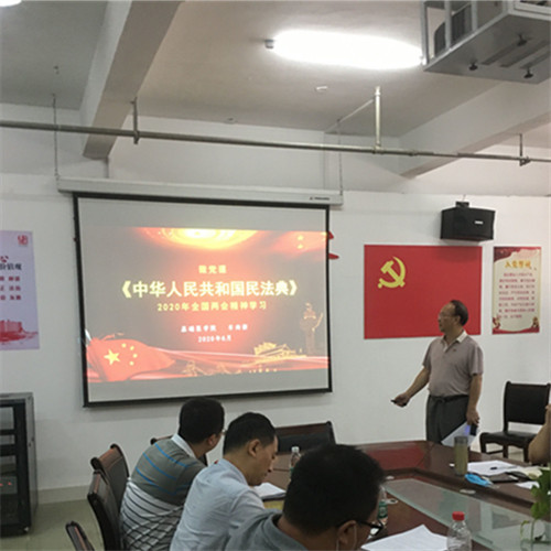 经理车向新同志也给大家上了《中华人民共和国民法典解读》的微党课,带领大家学习了人大会上刚刚通过的《民法典》的主要内容和重要意义,要求大家要加强学习,知法懂法,依法办事。许晓源副经理及党委委员傅文学同志也分别领学了习近平总书记在专家学者座谈会上的重要讲话精神和省委书记刘奇同志在省十三届人大四次会议的讲话精神。