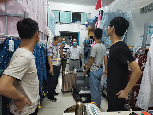在走访慰问过程中,学院领导深入返校员工每一间宿舍,与同学们亲切交谈。叮嘱大家一定要增强防疫意识,做好日常防护工作;坚持每天早中晚三次体温检测;劳逸结合,提高身体免疫力。学院领导同时督导大家要进行健康卫生大扫除,养成良好的卫生习惯。尤其作为一名医员工,同学们更应该提高健康卫生意识,拓展疾病预防知识,提升专业素养。