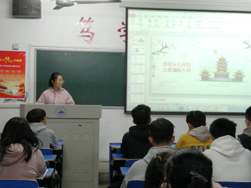 A1921和B1921班在思贤楼506举行活动。A1921班团支书首先向同学们介绍了本次活动的目的,点明了此次活动主题。随后,B1921班同学代表上台朗诵《游子吟》,表达了对父母的爱,作为当代老员工的我们应怀着一颗感恩的心回报父母。之后由A1921班同学代表用搞笑的漫画形式展现感恩,该同学用韩信报恩的故事说明人与社会之间也需长存一颗感恩的心。活动最后,由A1921班团支书为大家播放了有关感恩的视频,给同学们留下了深刻的印象。