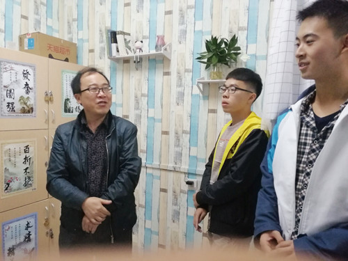 在检查过程中,余朝阳书记表示男生的寝室里卫生情况较好,地板干净,物品摆放整齐,在寝室里也无异味,大多数寝室内都贴有许多医学画册、人体构造图、医员工誓言等富含医学人文主义风格的装饰品。在检查过程中,同学们都很有礼貌的欢迎老师的到来,余朝阳书记在检查过程中也时不时关心同学们的生活情况,对同学们的日常生活进行了了解,并和同学们讨论寝室的改造问题,改变了同学们印象中老师的严肃形象,让同学们感受到了院领导和老师的亲切关怀。