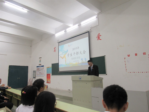 丁伟业同学代表2019届员工会发言,他首先介绍了员工会各个部门的作用及意义,号召各部门团结协作,凝练特色,进一步提高工作效率。
