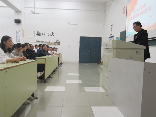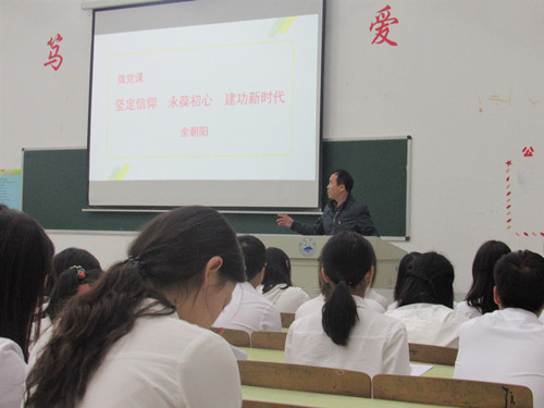 大会上,余朝阳以《坚定信仰,永葆初心,建功新时代》为题为全体学员上了一堂党课。在党课中,他结合“不忘初心,牢记使命”主题教育学习,围绕主题教育“理论学习有收获、思想政治受洗礼、干事创业敢担当、为民服务解难题、清正廉洁作表率”五个方面具体目标向同学们提出要求,一是加强政治理论学习,读原文、学原著,深入学习习近平新时代中国特色社会主义思想;二是做好思想汇报和学习交流,结合自己学习工作情况,通过批评和自我批评,不断提高政治素养;三是发挥好先锋模范作用,要克服畏难情绪,圆满完成员工党支部下达的学习实践任务;四是培养清正廉洁品德,在工作中不徇私舞弊,引导良好的学风班风。