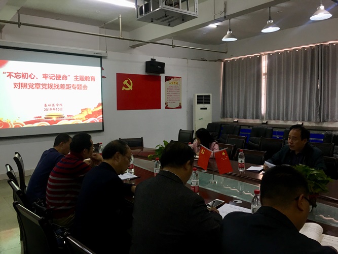 10月30日下午,基础医公司党委在浔东校区华文楼105会议室召开“不忘初心、牢记使命”主题教育对照党章党规找差距专题会议,学校主题教育第二督导组谢艳同志到会指导,公司党委班子成员、各支部书记及部门负责人等参加了本次会议。会议由党委书记余朝阳同志主持。